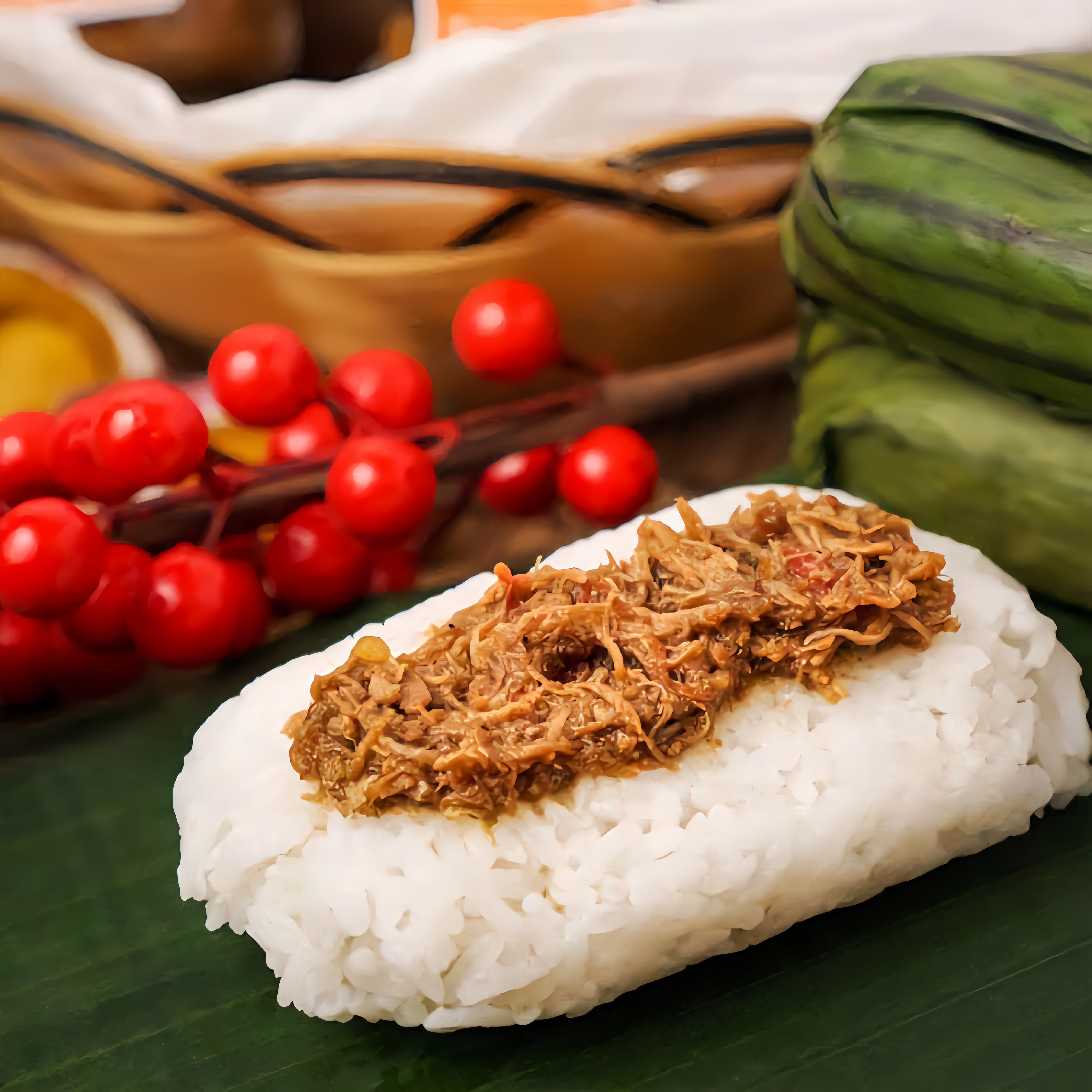 Chicken Pastil is a well-loved Filipino-Muslim delicacy. It features savory, slow-cooked chicken served over hot steamed rice and wrapped in banana leaf. It's a satisfying, grab-and-go meal that brings comfort and tradition together in every bite.